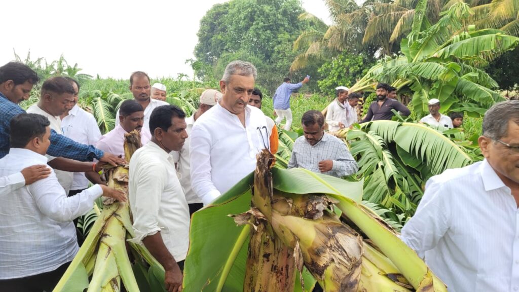 मागील काही दिवसापासून प्रतिकुल हवामानामुळे पिकांचे बाजारभाव घसरले आहेत. बाजारपेठेतील व्यापारी फिरकत नसल्याने बळीराजावर दुहेरी संकट ओढवले गेले, त्यातच केळी बाग चांगल्या बहरल्या असताना अवकाळी पाऊस झाल्याने शेतकरी हवालदिल झालेला आहे.