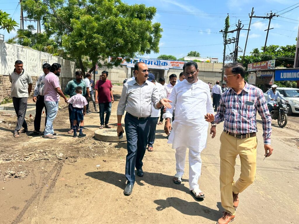 सम्राट चौक ते जुना कारंबा नाका ते बलदवा कॉर्नर व ॲम्बेसेंडर हॉटेल पर्यंतचा हा रस्ता प्रचंड रहदारीचा आहे. या रस्त्यावरुन एस.टी. महामंडळाच्या सोलापूर शहरातुन बाहेर पडतात. यापुर्वी एस.टी. महामंडळाच्या बसेस हे छत्रपती शिवाजी महाराज चौकातून वळून घेऊन संभाजी महाराज चौकातुन शहराच्या बाहेर पडत होत्या. वाहतुक विस्काळीत होते. याचा ह्या परिसरातील नागरीकांना प्रचंड मोठ्या प्रमाणात त्रास होतो. सम्राट चौक ते जुना कारंबा नाका या ठिकाणी वाहतुक वळविल्यामुळे सदरच्या रस्त्याच्या कडेला जड वाहतुक प्रचंड प्रमाणात होत असल्याने रस्त्याचे मजबुतीकरण करण्यात आले नसल्याने हा रस्ता खराब झाला आहे. हा रस्ता बुधवार पेठ परिसरात 15 ते अधिक शाळा, कॉलेज, महाविद्यालये व उत्तर तालुक्यातील 22 गावांना जोडला असुन मोठ्या प्रमाणावर नागरीक ह्या रस्त्याचा वापर करतात. एस.टी. महामंडळाच्या प्रचंड वाहतुकीमुळे ह्या रस्त्याची ड्रेनेज लाईन सातत्याने फुटत असते. यावेळी महानगरपालिकेचे अतिरिक्त आयुक्त संदीप कारंजेे येथील रस्त्याच्या अवस्थेची माहिती दिली. माजी गटनेते आनंद चंदनशिवे, विभागीय अधिकारी अविनाश अंत्रोळीकर, उप अभियंता प्रकाश दिवाणजी , आवेक्षक विष्णू कांबळे, बांधकाम विभागाचे उपअभियंता, नीलकंठ मठपती, आवेक्षक श्याम कन्ना , कनिष्ठ अभियंता महेश मणियार, कनिष्ठ अभियंता अभिजीत बिराजदार, पुरुषोत्तम धुत, अनिल छाजेड, राहुल बागले, आकाश कोकरे, ओम लड्डा, विठ्ठलदास मुंदडा, गोपाल शास्त्री , विष्णू राठी, राजेश जाजू, निलेश भंडारे, गुड्डू शर्मा, विजय बलदवा, राकेश मालू व या परिसरातील नागरिक बहुसंख्येने उपस्थित होते.